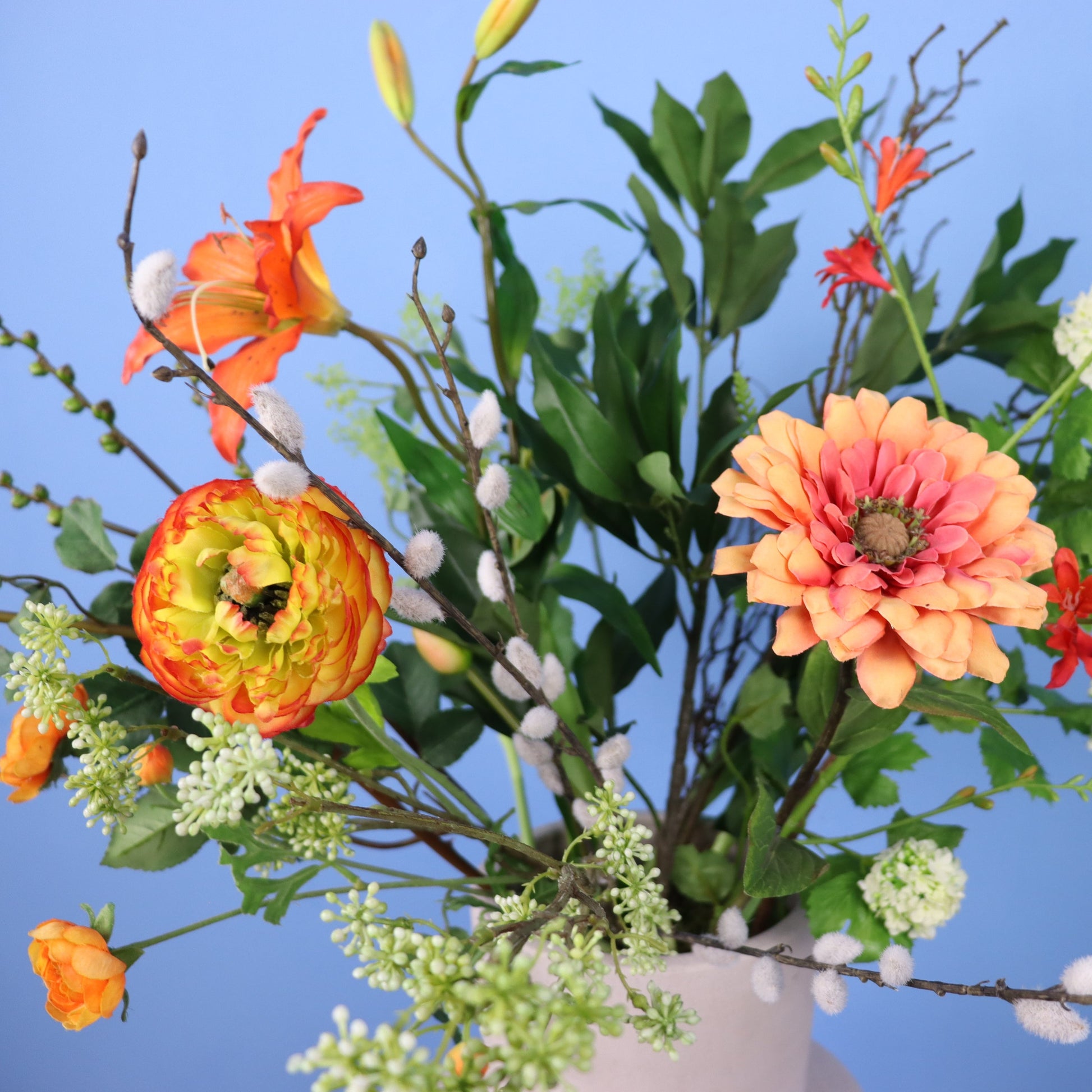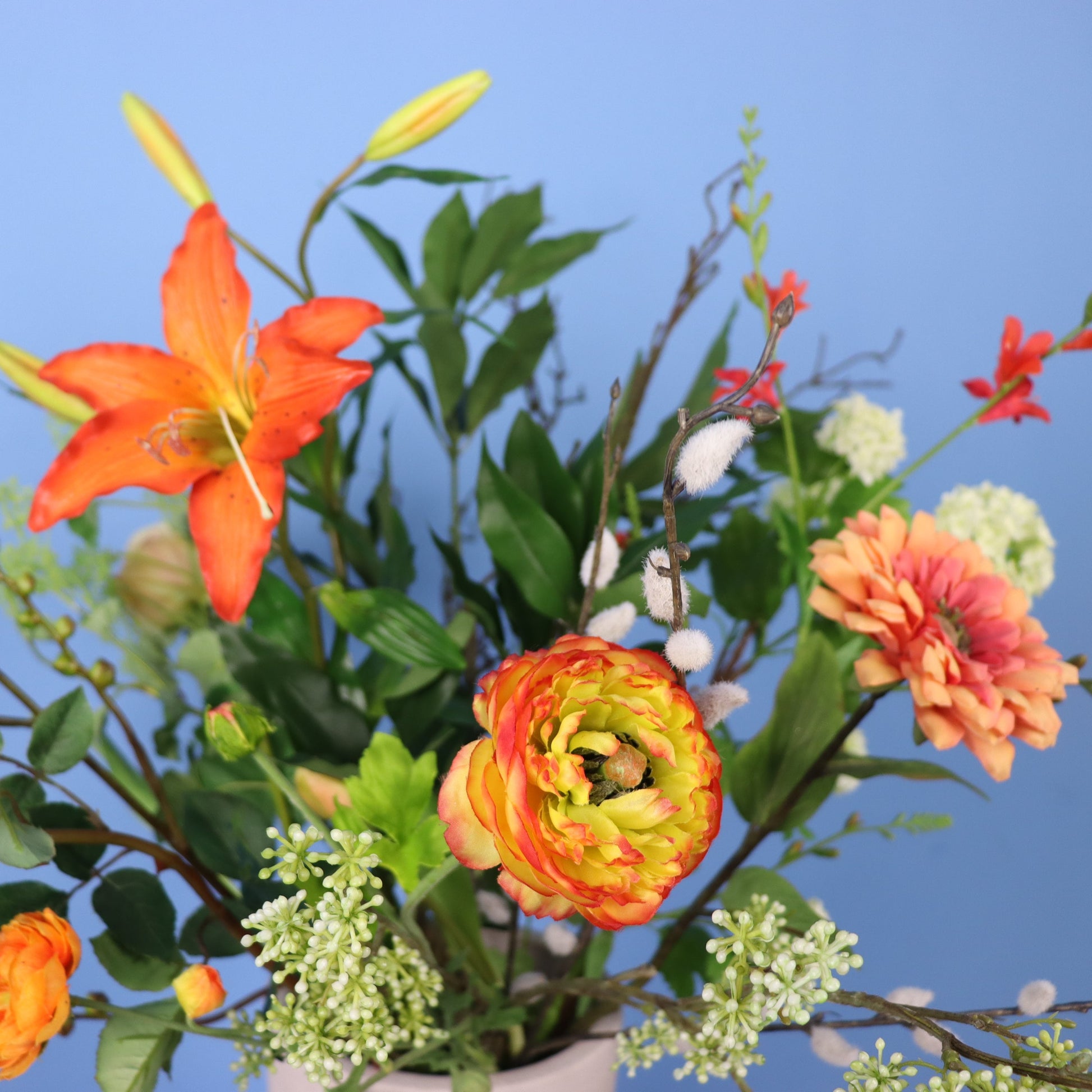 Grote, stevige betonnen Piet Boon vaas met een wilde bos bloemen.