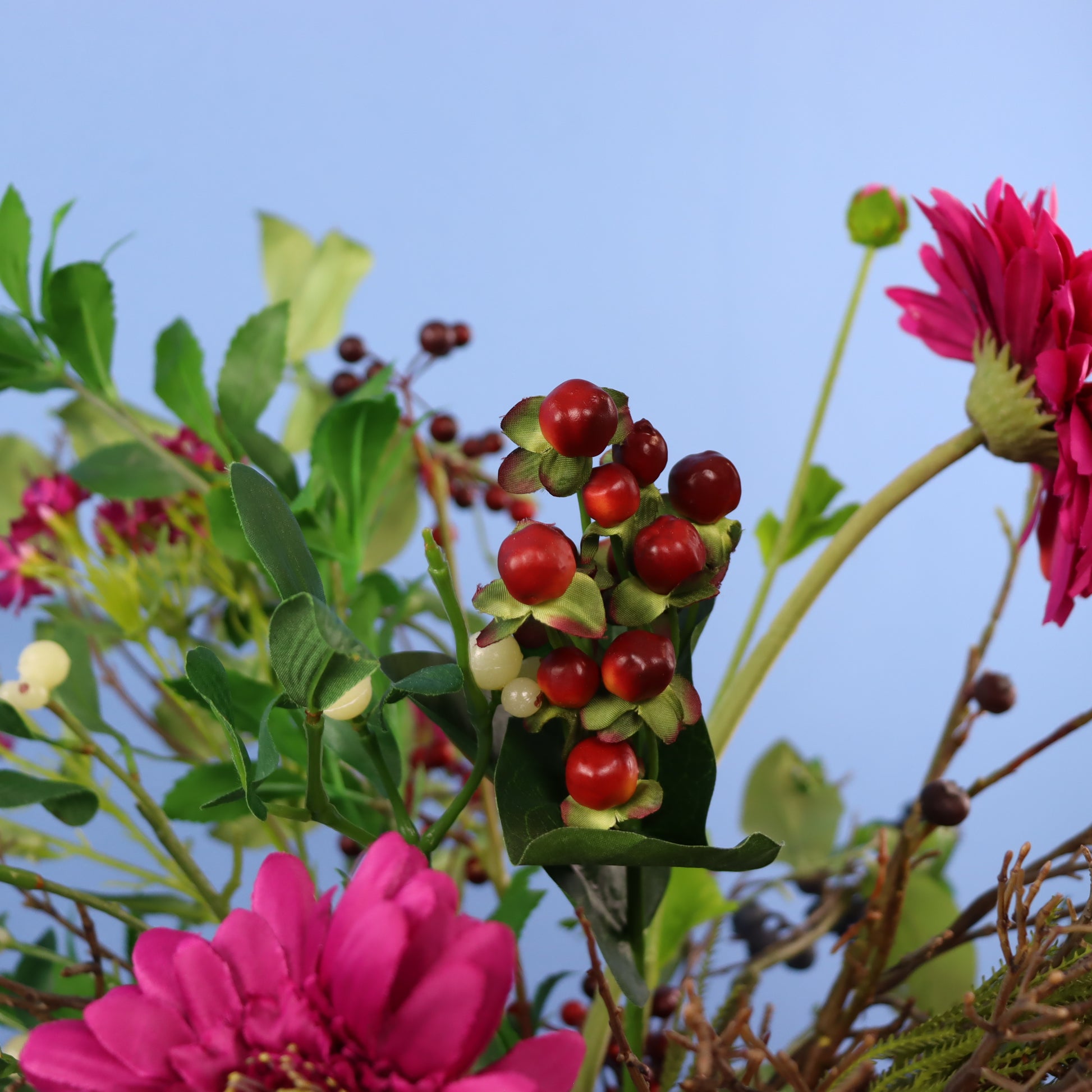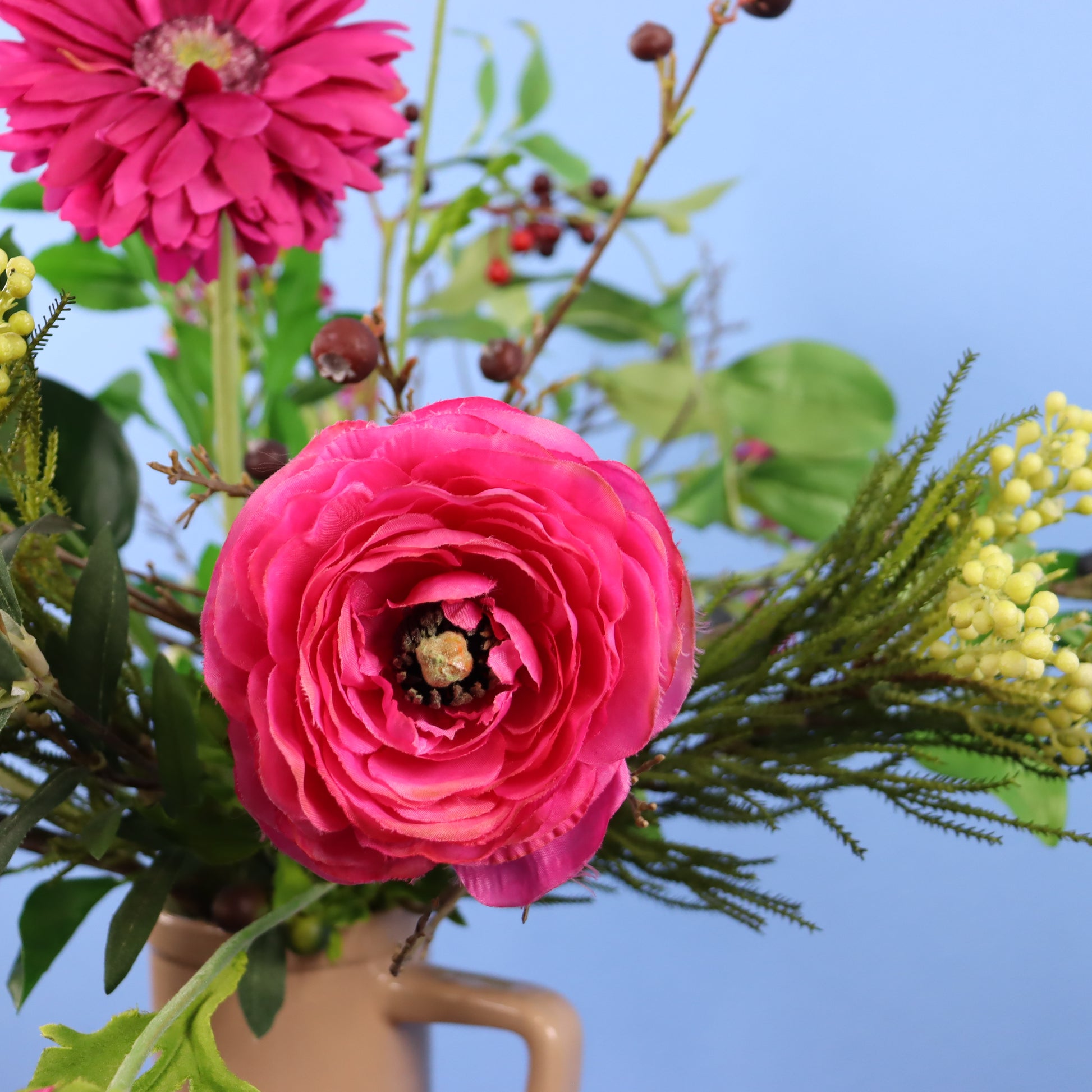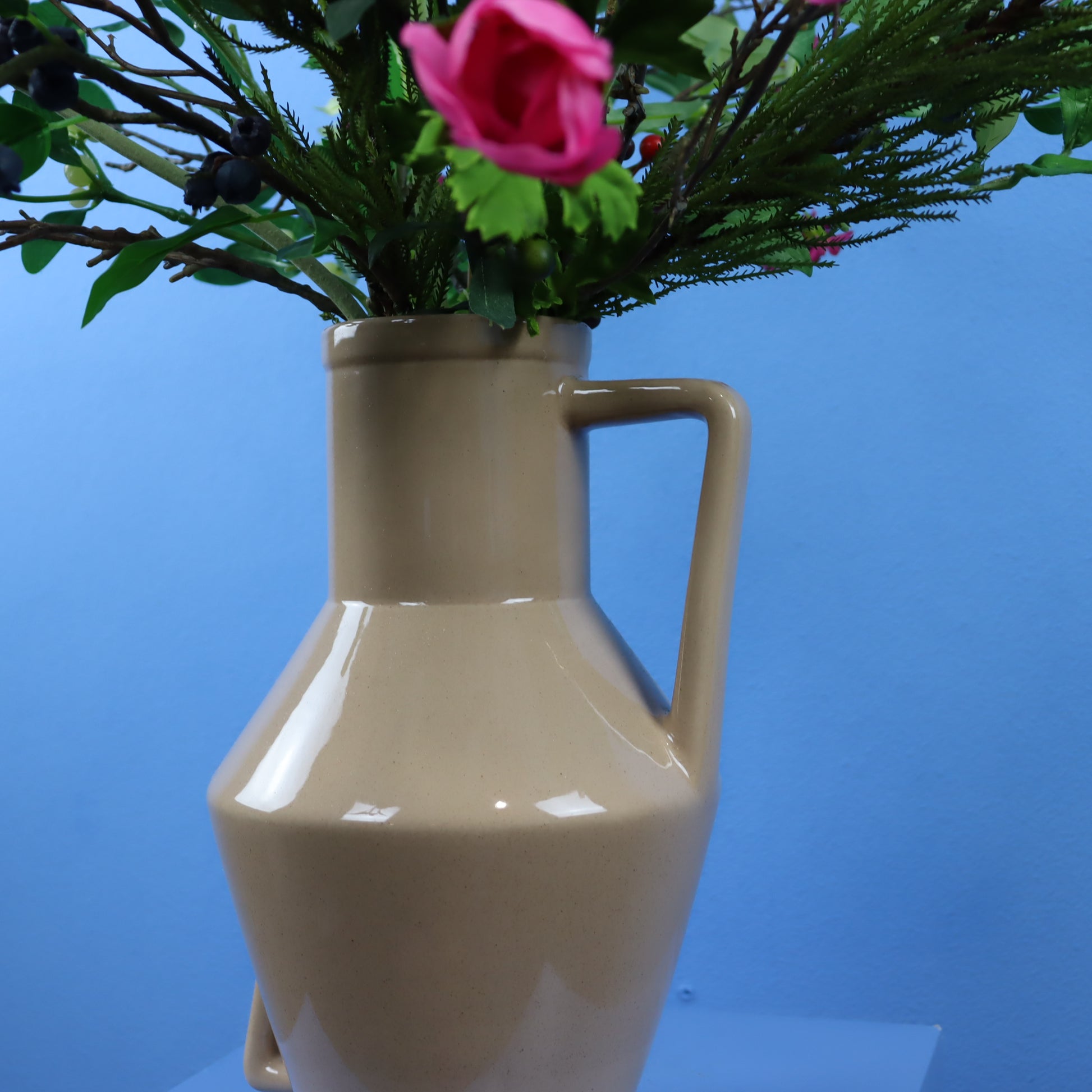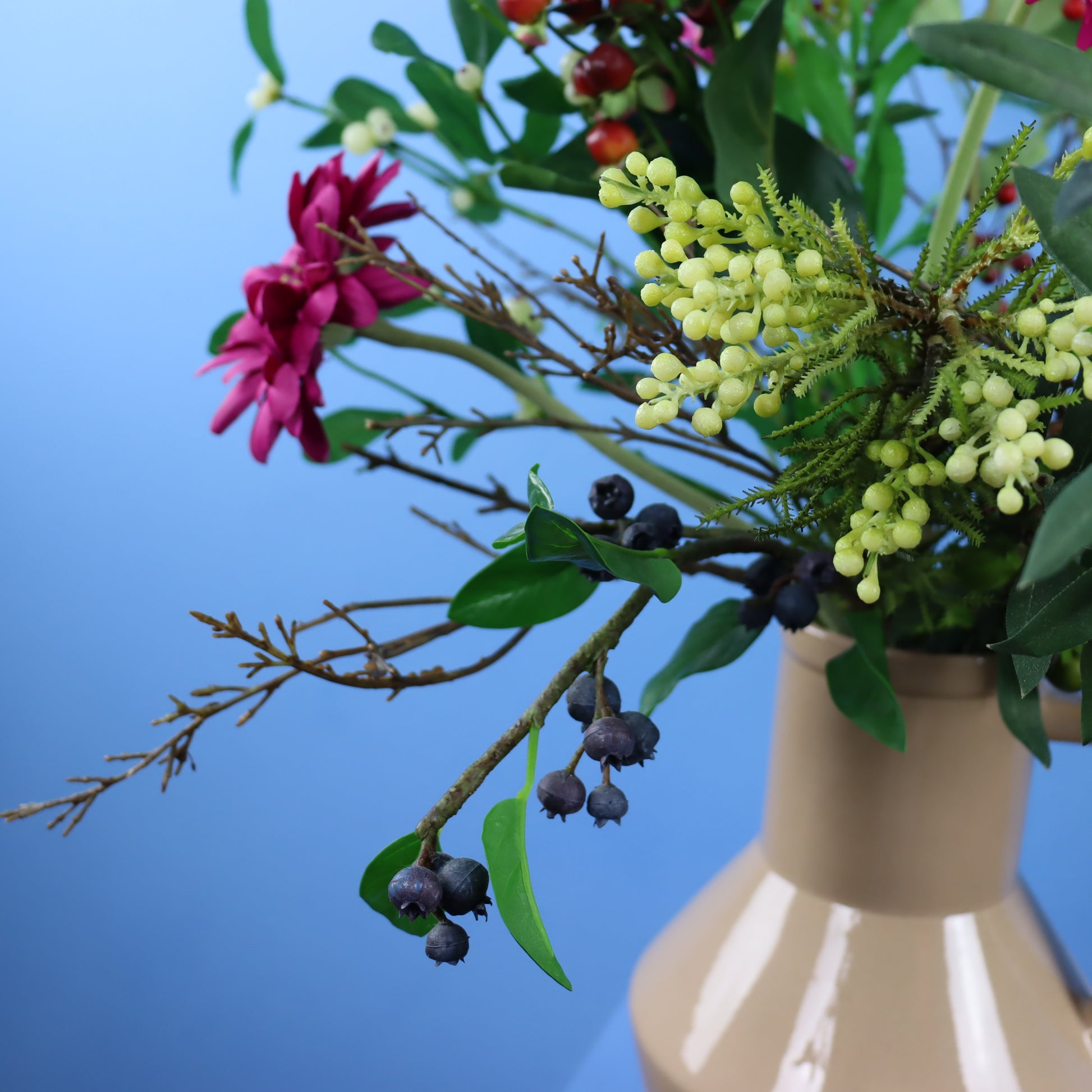 Beige Return to Sender vaas gevuld met een herfstboeket.
