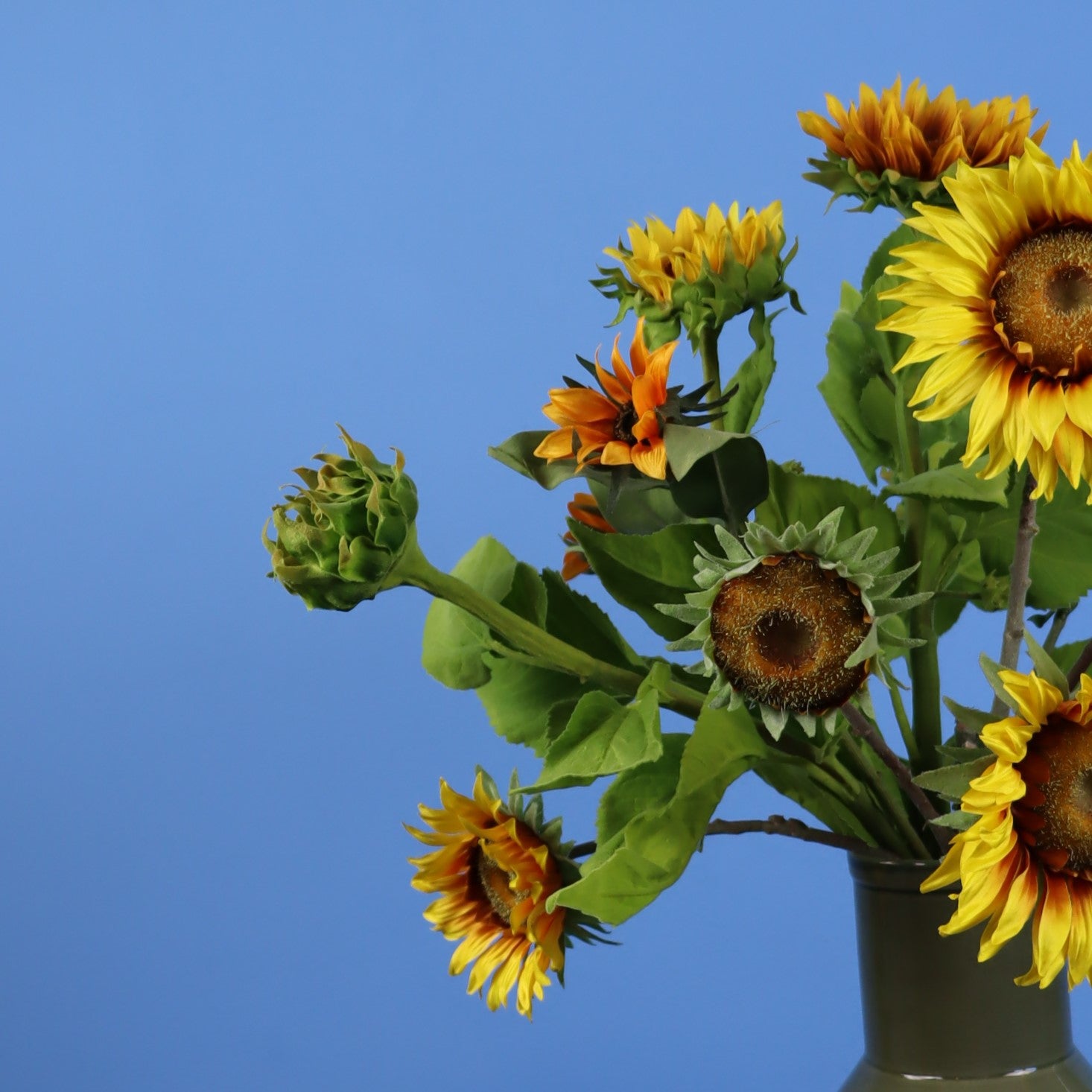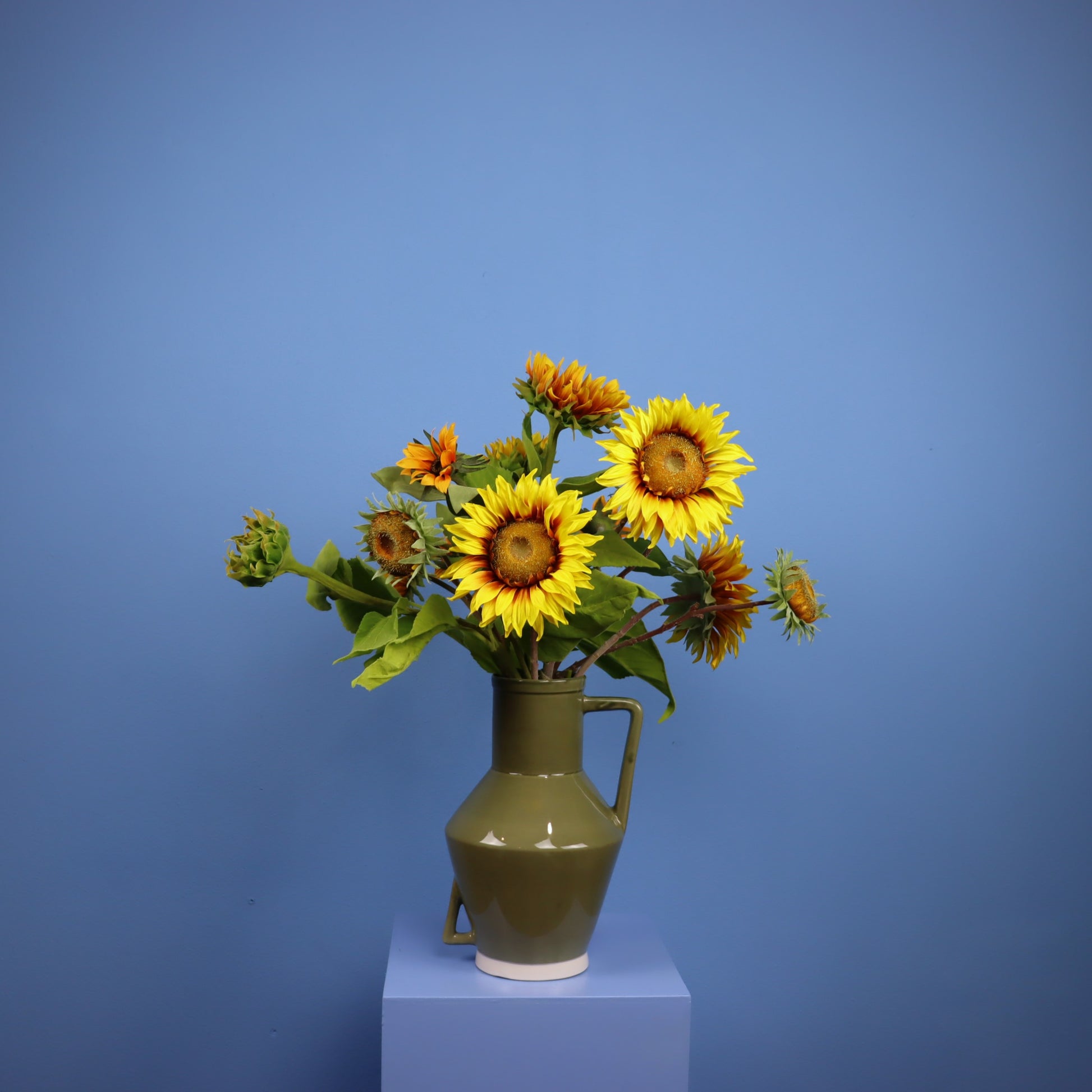 Deze donkergroene Return to Sender vaas komt met prachtige zonnebloemen.