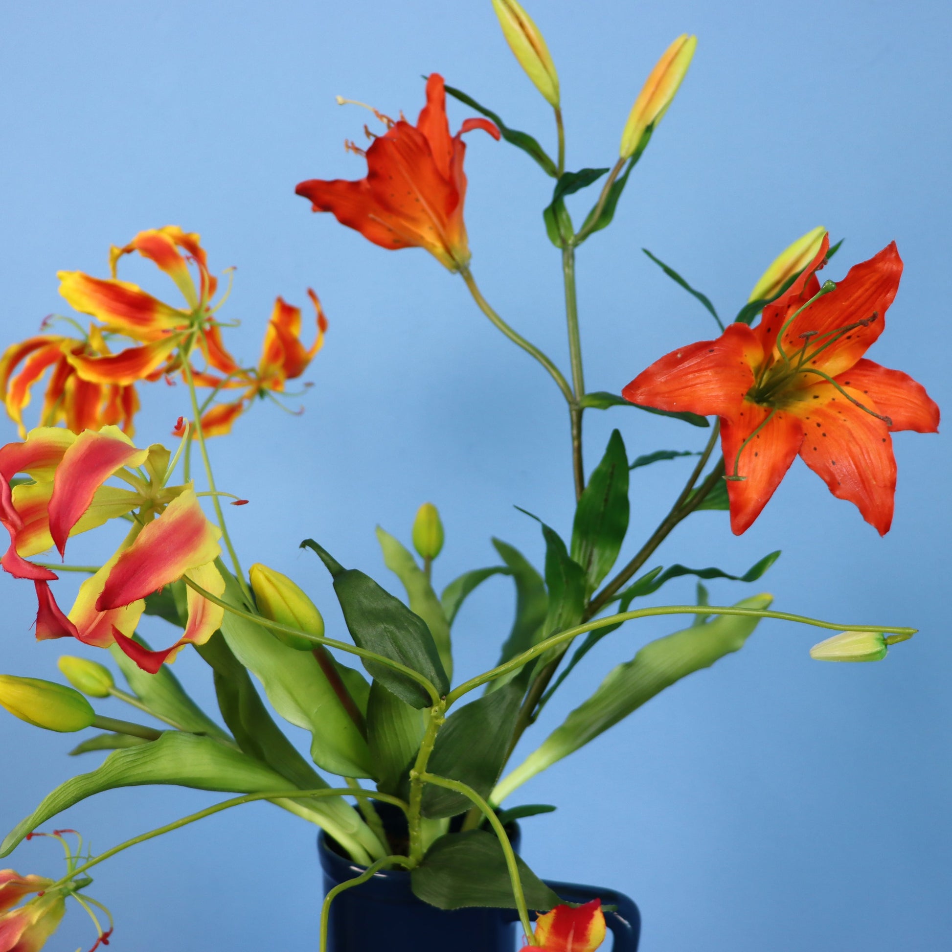 Prachtige blauwe Return to Sender vaas met een najaarsboeket.