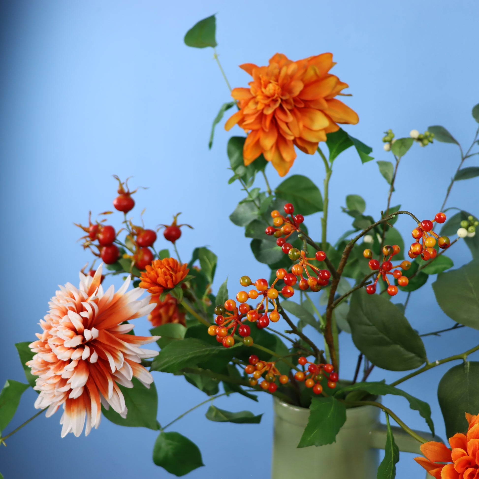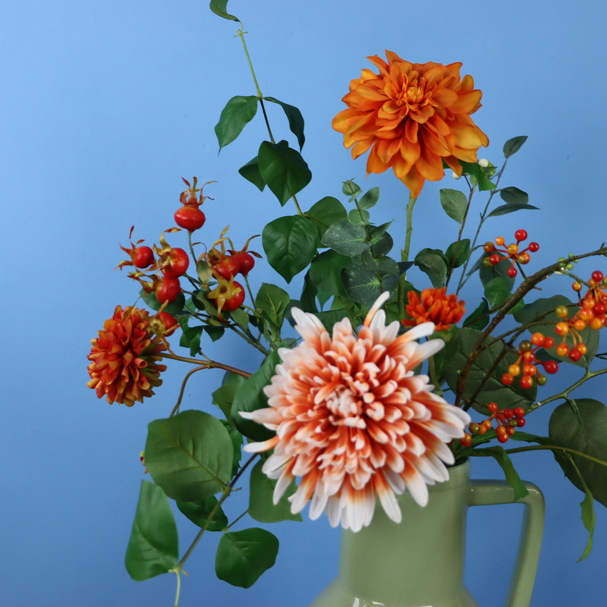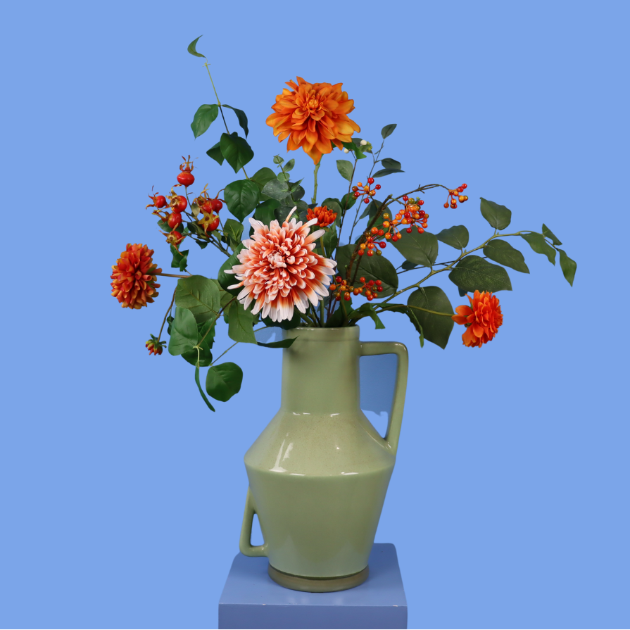 Return to Sender vaas met een oranje bos blijvende bloemen.