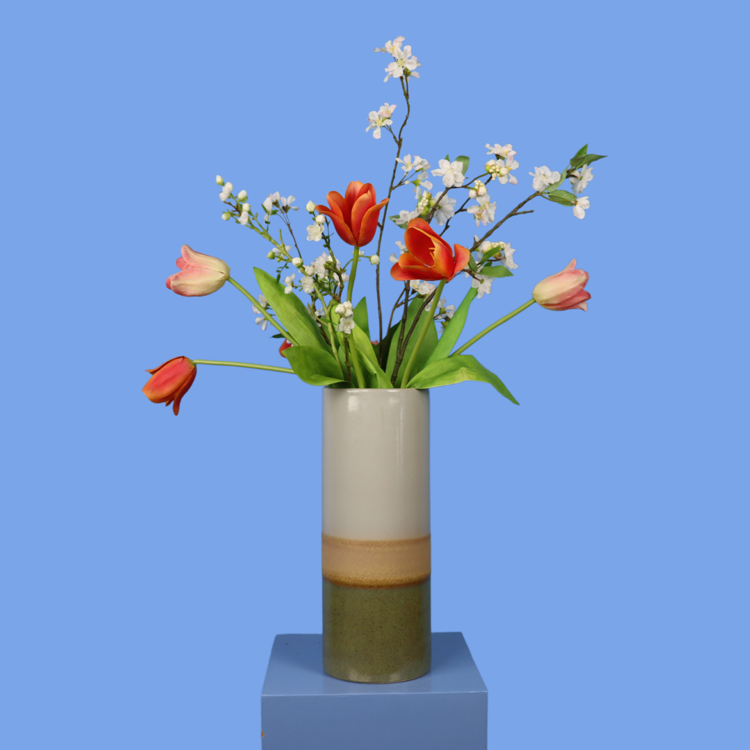 Een mooie blijvende bloemenmix in een vaas van POLS POTTEN.