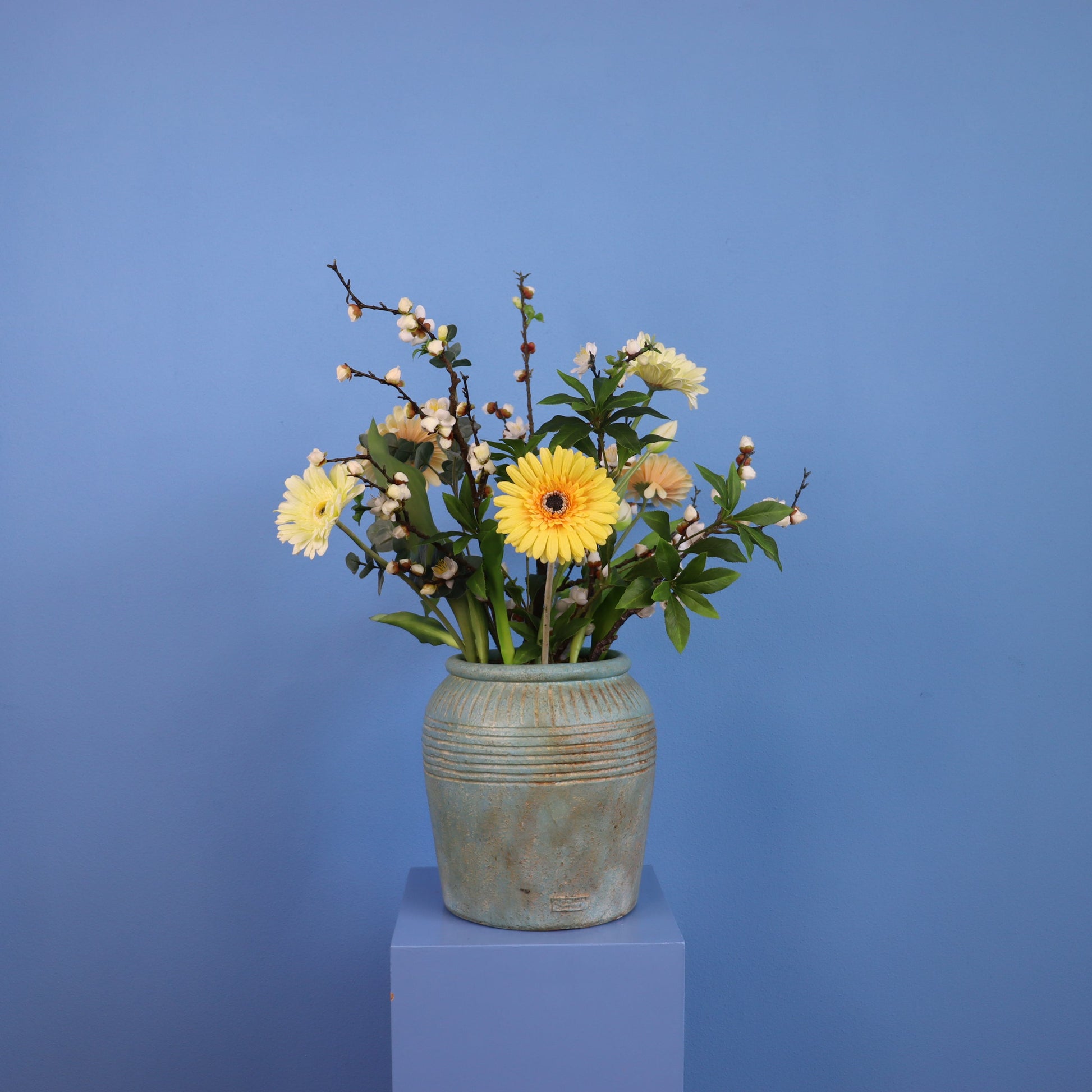 Reliving vaas van Tica in het groen gevuld met een voorjaarsboeket.