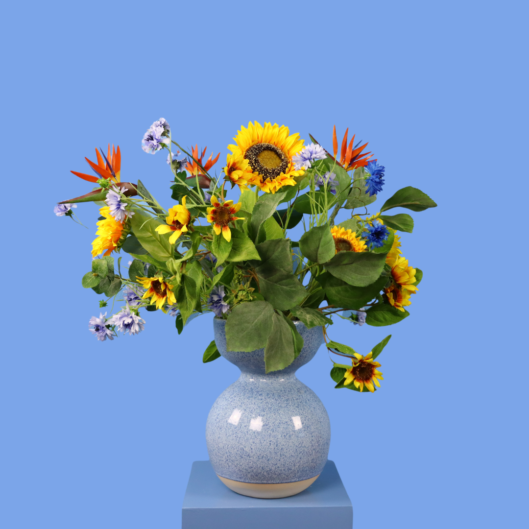 Een mooie blijvende bloemenmix in een vaas van POLS POTTEN.