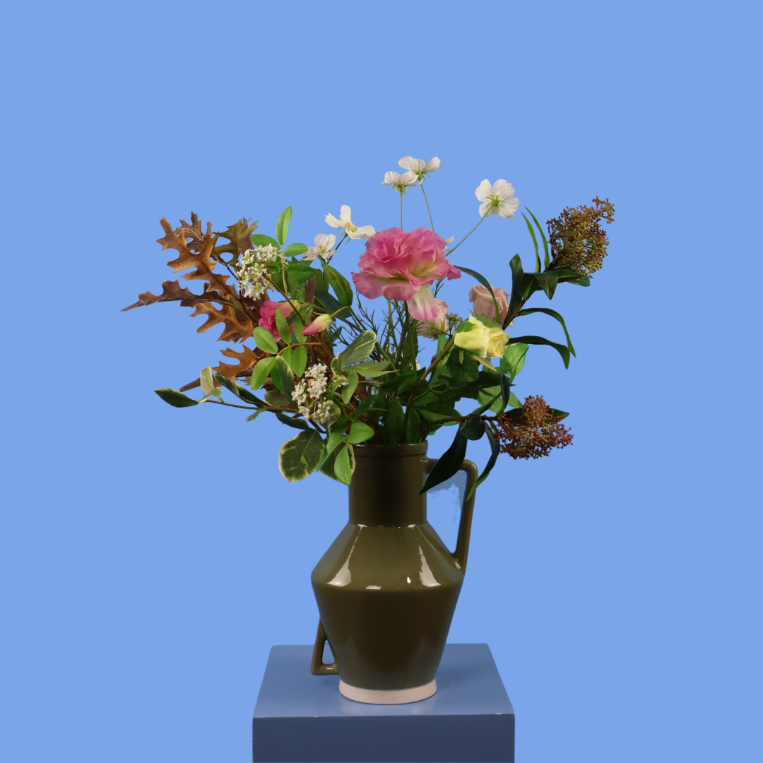 Prachtige donkergroene Return to Sender vaas met een blijvende bloemen mix.