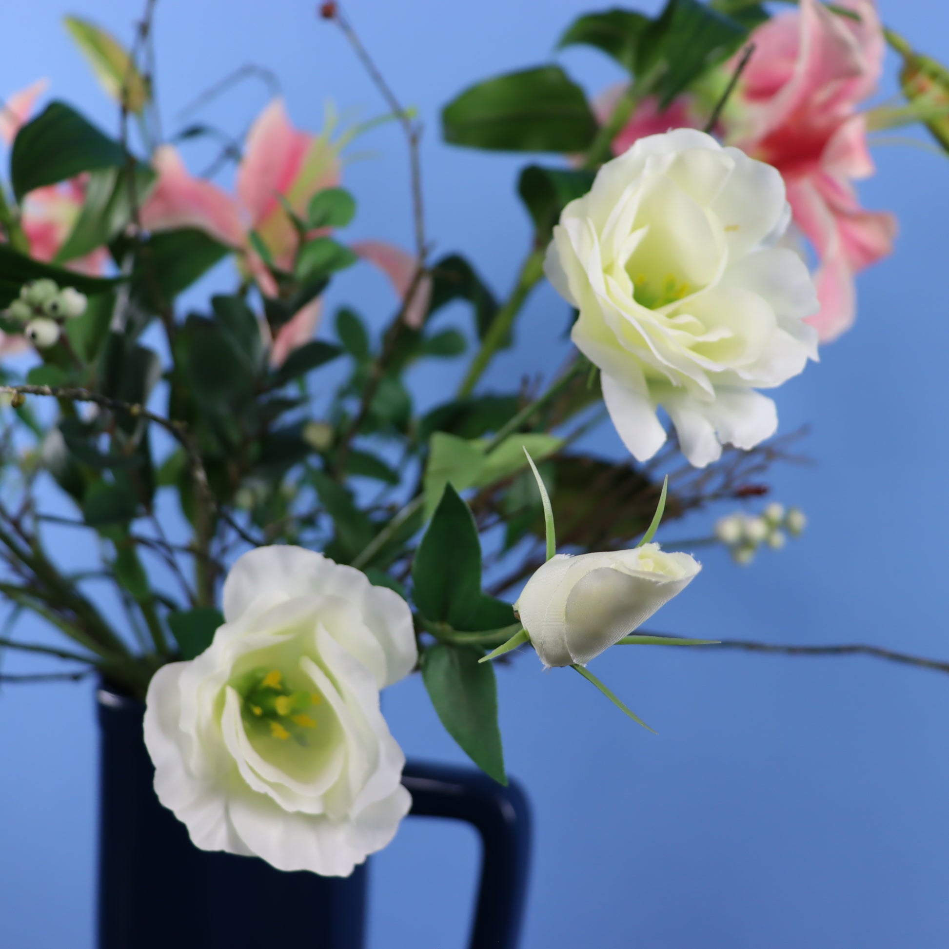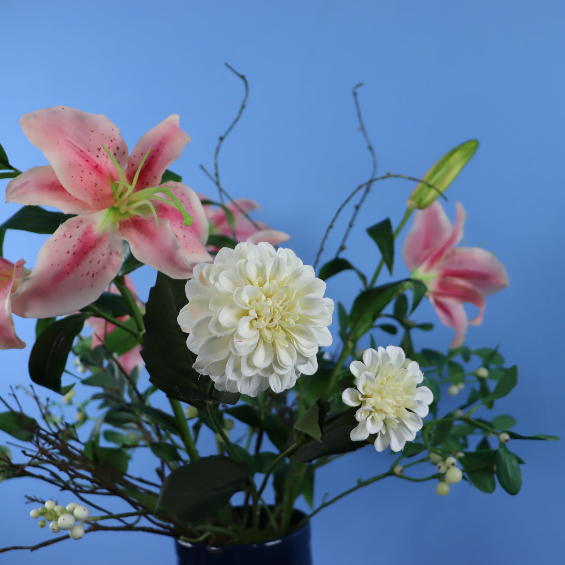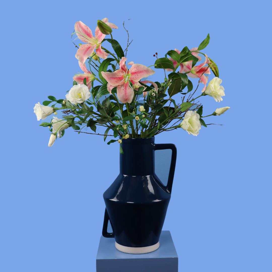 Deze prachtige donkerblauw Return to Sender vaas komt met blijvende bloemen.